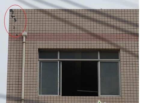 昨日下午1点多,“砰”的一声响,泉州市区城东街道庄任社区一栋厂房5楼外墙,因遭雷击,瓷砖被劈裂,所幸无人受伤。泉州市防雷中心副主任陈承滨解释,建筑物遭受雷击受地形等多种因素影响,该建筑物相比周围矮房较突出,且未安装防雷设施,因此遭遇雷击。