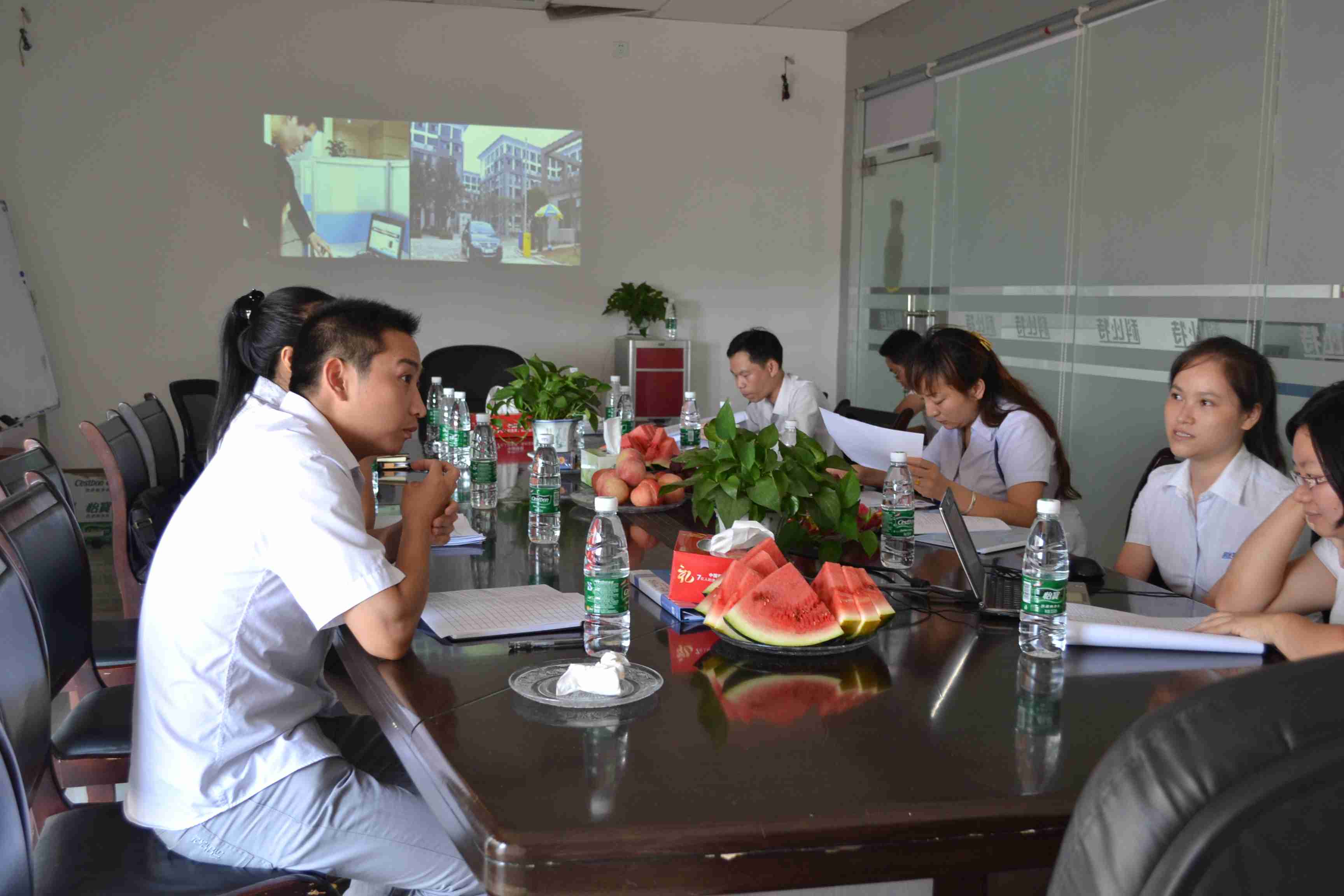 上午10点,调查团准时到来,前台屏幕上显赫的欢迎标语第一时间映入眼帘,告诉他们,我们有充足的信心接受他们的考查,带着万分的期待欢迎他们的到来。