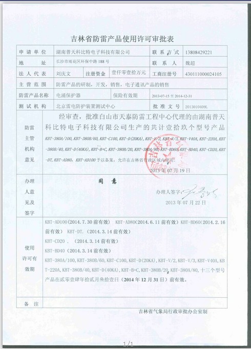 科比特防雷产品吉林省续备案成功