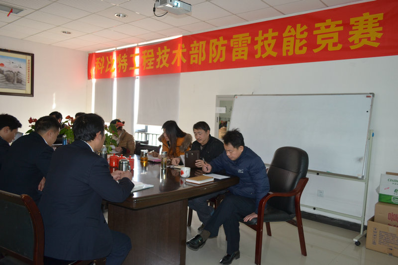 当天,共有总经理郭贵雄、常务副总刘庆文、副总彭宇、技术总监刘市平、商务部洪部长、新能源市场总监周亚玲、总经办主任罗勇7人出席了本次竞赛活动并担任评委。竞赛以PPT和现场解说的方式进行,光影交错的竞赛舞台,弥足珍贵的“高手过招”,工程部的技术精英们全力以赴,结合自身施工实践经验,充分彰显了科比特防雷工程技术人员的实力,他们赛出了风格,赛出了水平,赛出了自我魅力。比赛本身而言,过程的意义已经远远大于结果,最主要的是通这次技能竞赛达到提高技能、交流技能、学习技能的目的。