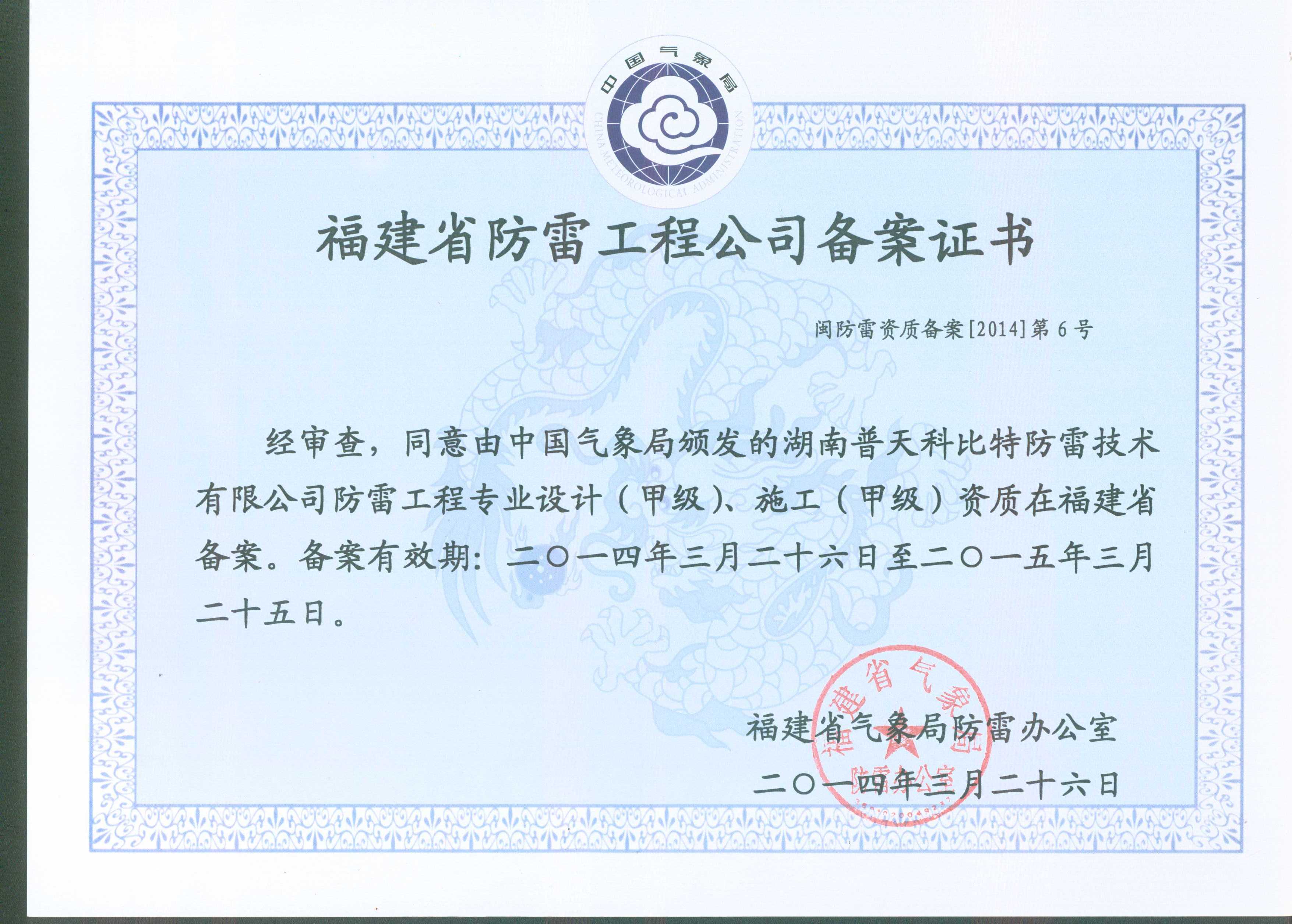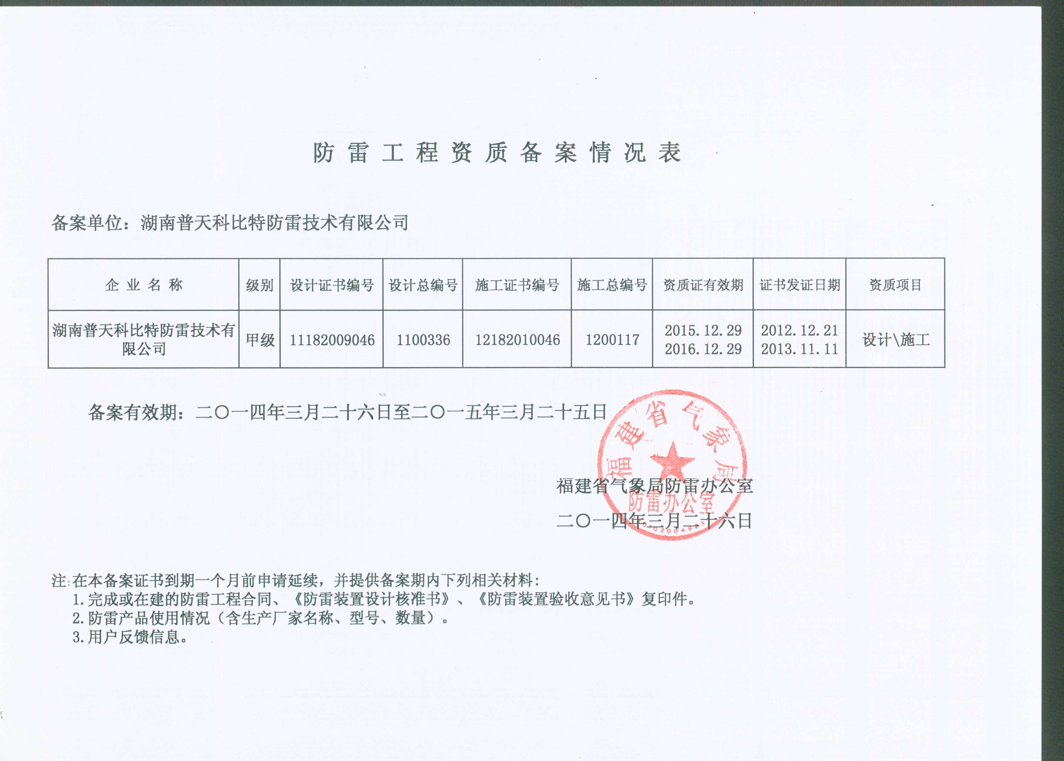 科比特福建省甲级防雷工程施工资质备案证明