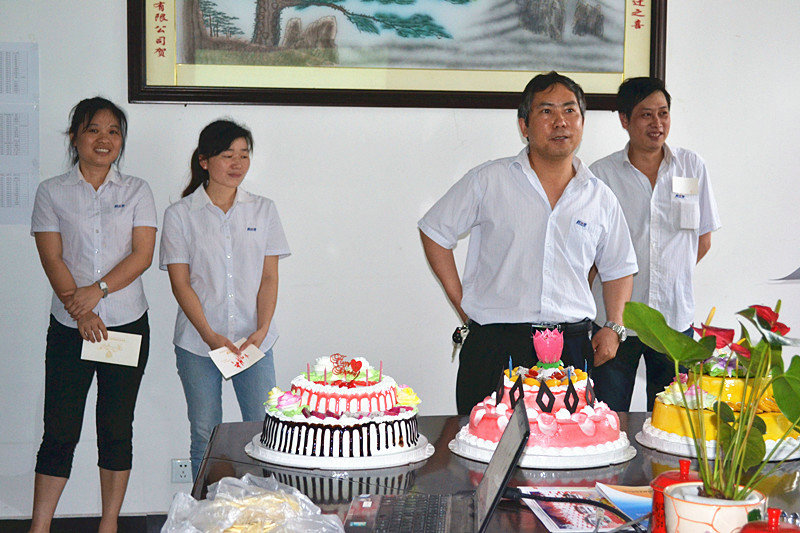 为了庆祝公司5月份员工的生日,公司于5月28日下午5点15分在会议室举行了"生日联欢会"。此次生日会的寿星们分别是谭维益、杨文、马青山和刘云四位。