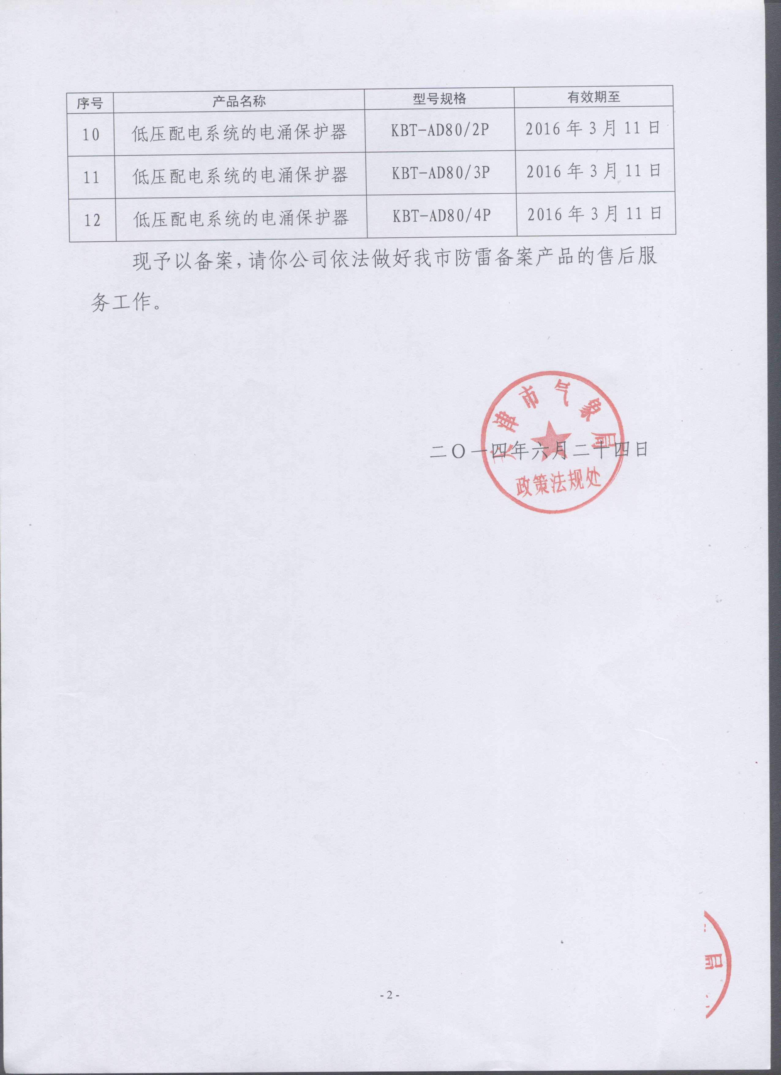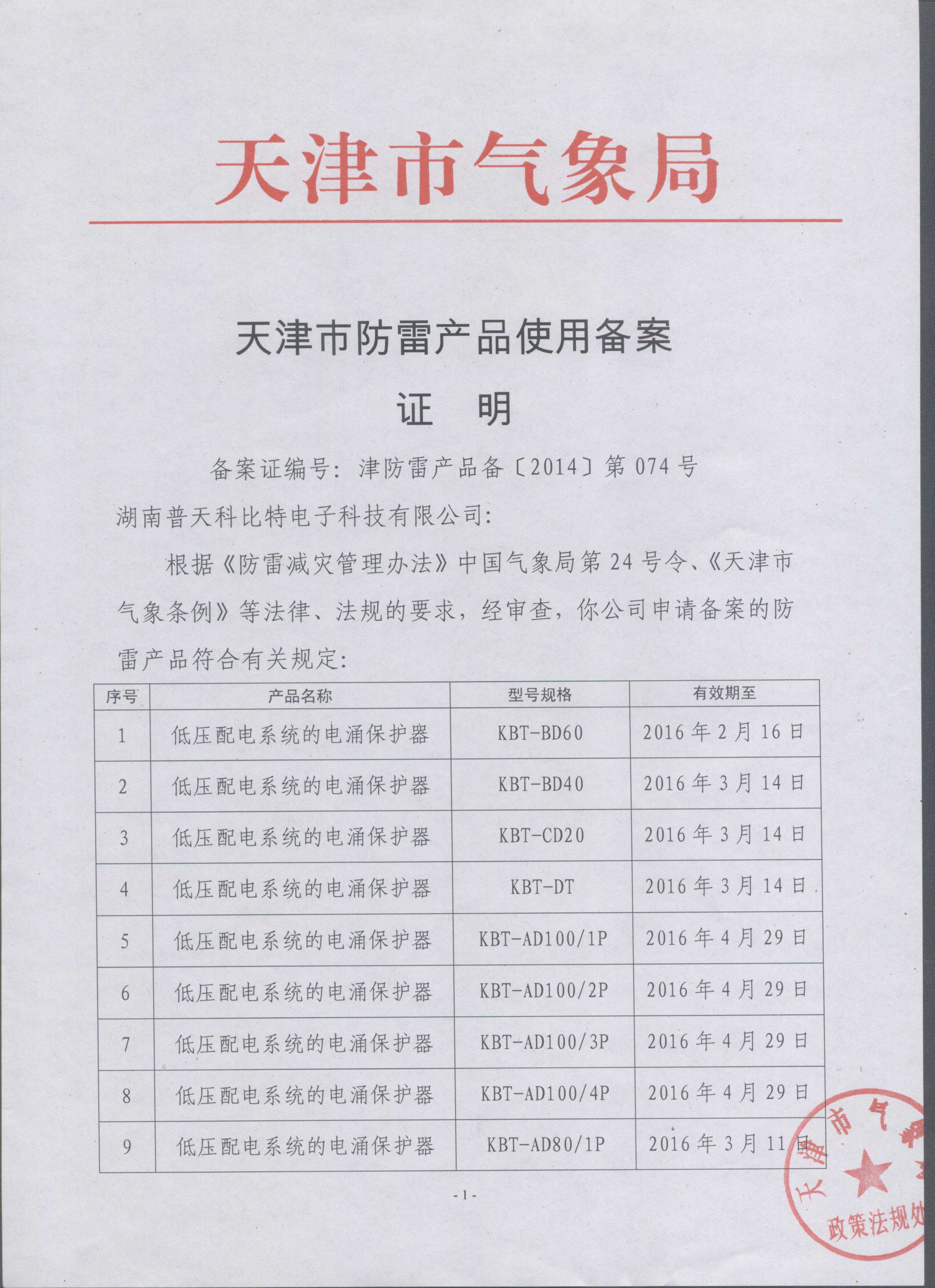 备案成功,再次验证了科比特防雷产品的可靠性。以下是我司在天津市的相关备案证明。