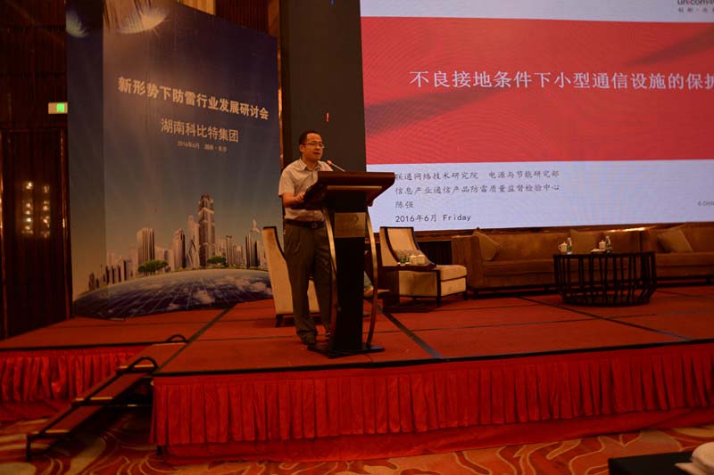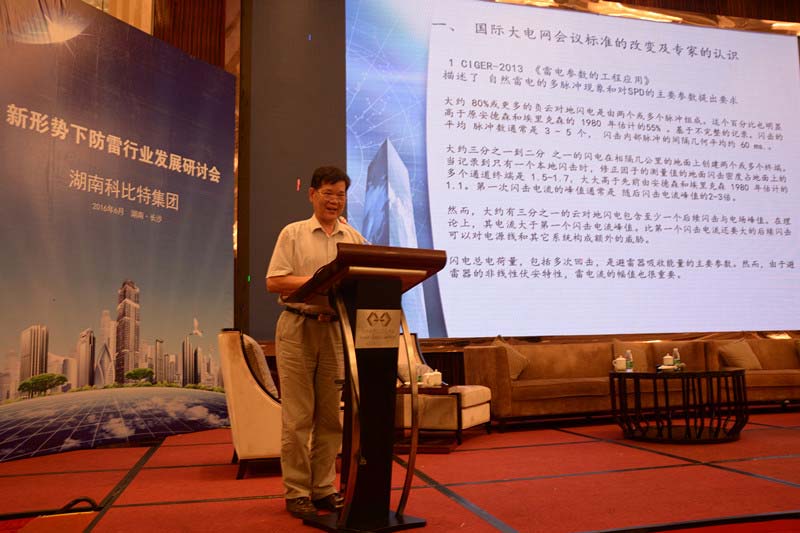2016年6月17日上午8点30分,由湖南科比特集团主办的新形势下防雷行业发展研讨会在长沙现代凯莱大酒店隆重召开,会议由湖南省防雷中心副主任贾绽云主持,湖南省防雷中心主任王智刚出席并讲话。中国气象局防雷专业委员会专家顾问组成员肖稳安、中国气象学会雷电防护委员会副秘书长兼IEC/TC81/WG3委员关象石、 原广东省气象局副局长杨少杰、中国科学院中国建筑标准化协会雷电专业委员会(正研级高级工程师)全宇辰、中国联通网络技术研究院信息产业通信产品防雷质检中心主任陈强等知名专家就防雷技术、标准、政策趋势等做了主题演讲。