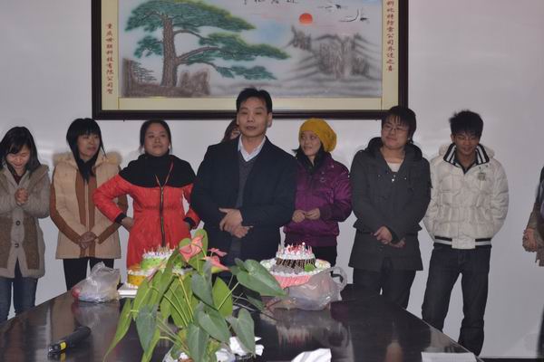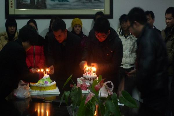 1月3号下午5点10分,我们公司为2011年12月份和2012年1月份生日的员工庆生。在公司全体员工的深深祝福声中,一场别开生面的生日聚会上演了。