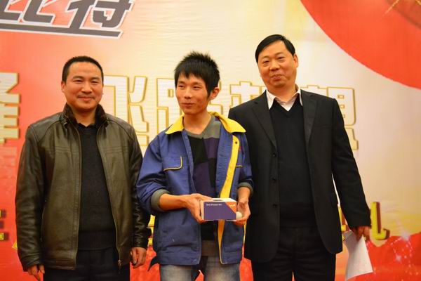 还有一个有趣的互动环节,也正是全体员工一直期待的,那就是抽奖活动。我们公司是想借助这个活动,让员工们开怀一笑,感受到公司的温馨关怀。在这一环节,主要是看看各位员工及家属朋友们的运气如何了,每位在场的员工都依次有序的进行了抽奖,在期间,抽到特等奖的是我们新能源事业部的彭航,他获得了索爱手机一部。还有一等奖、二等奖、三等奖及纪念奖共36个有奖名额。
