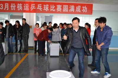 2012年3月24日下午1点,我司举办了一次妙趣横生的趣味活动赛,这是由总经办别出心裁地设计了一场简单的筷子夹乒乓球比赛。