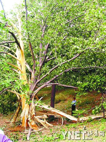 5月19日晚的雷雨中,北京最大马褂木遭雷“腰斩”。昨天,记者从北京植物园了解到,它是北京市最大最老的一棵马褂木,如何保护树木在此后的雷雨季节不再被雷劈,植物园正进行后续调研。