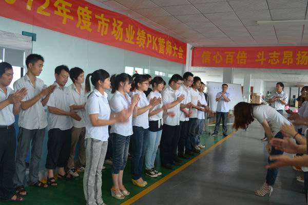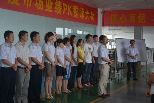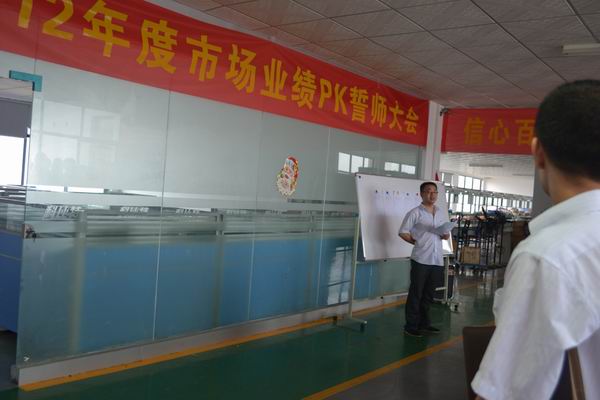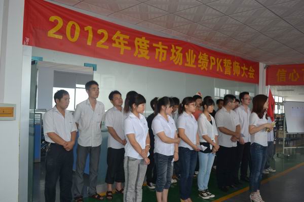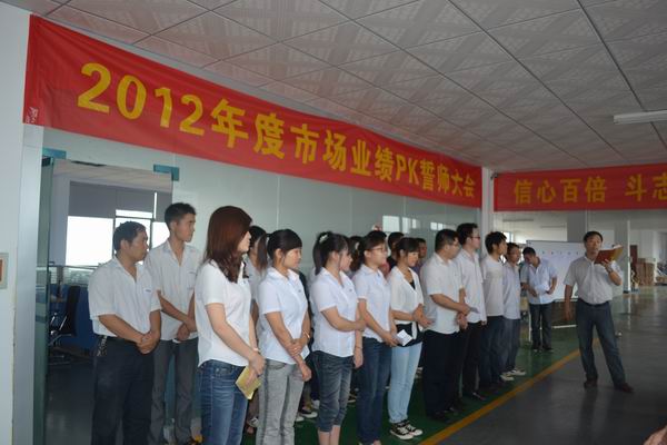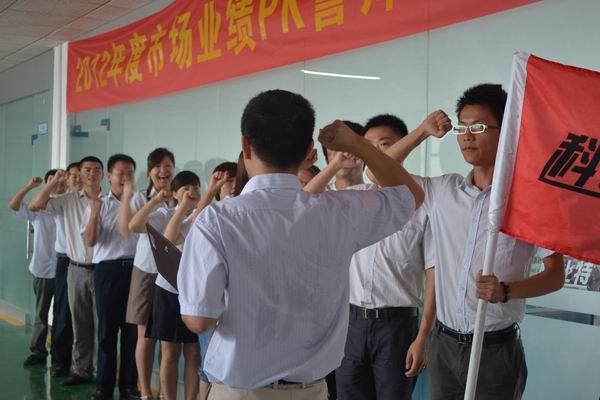 科比特7月17日讯:为激发市场人员的工作激情和热情,将团队精神凝聚成一股兴势力量,特此由防雷市场总监和新能源市场总监为头,带领各自的销售团队进行一次强有力的销售业绩PK。今天上午我司在新能源场地隆重举行了“2012年市场部业绩PK誓师大会”。