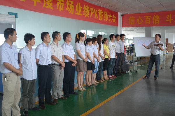 由总经办主任罗勇担任本次誓师大会的主持人,他首先对全体员工尤其是市场人员做出的贡献表示感谢,并提出本次誓师大会的事由和防雷市场及新能源市场业绩PK的规则,并鼓励全体员工满怀信心、作足功课、迎接挑战。